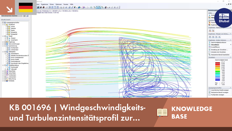 Diese Windgeschwindigkeit beinhaltet damit die mittlere Windgeschwindigkeit vmean und den maximalen Schwankungsanteil vfluctuation. Die Anströmturbulenzintensität kann in diesem Fall konstant über die Höhe sehr klein auf zirka 5 % eingestellt werden [4].