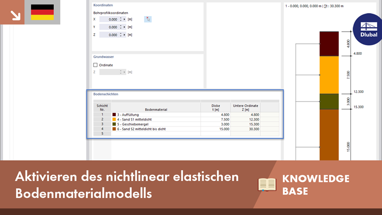 Das oben gezeigte Register (Bild 1) bietet in der Grafik eine schematische Darstellung der Spannungs-Dehnungs-Beziehung von Boden.