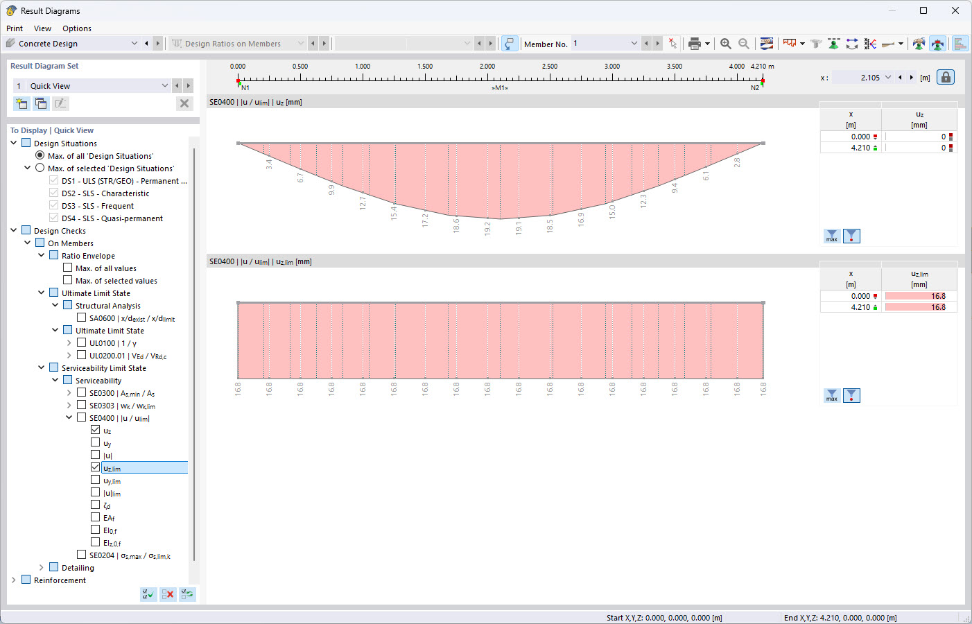 uz,lim = 4,210 m / 250 = 16,8 mm