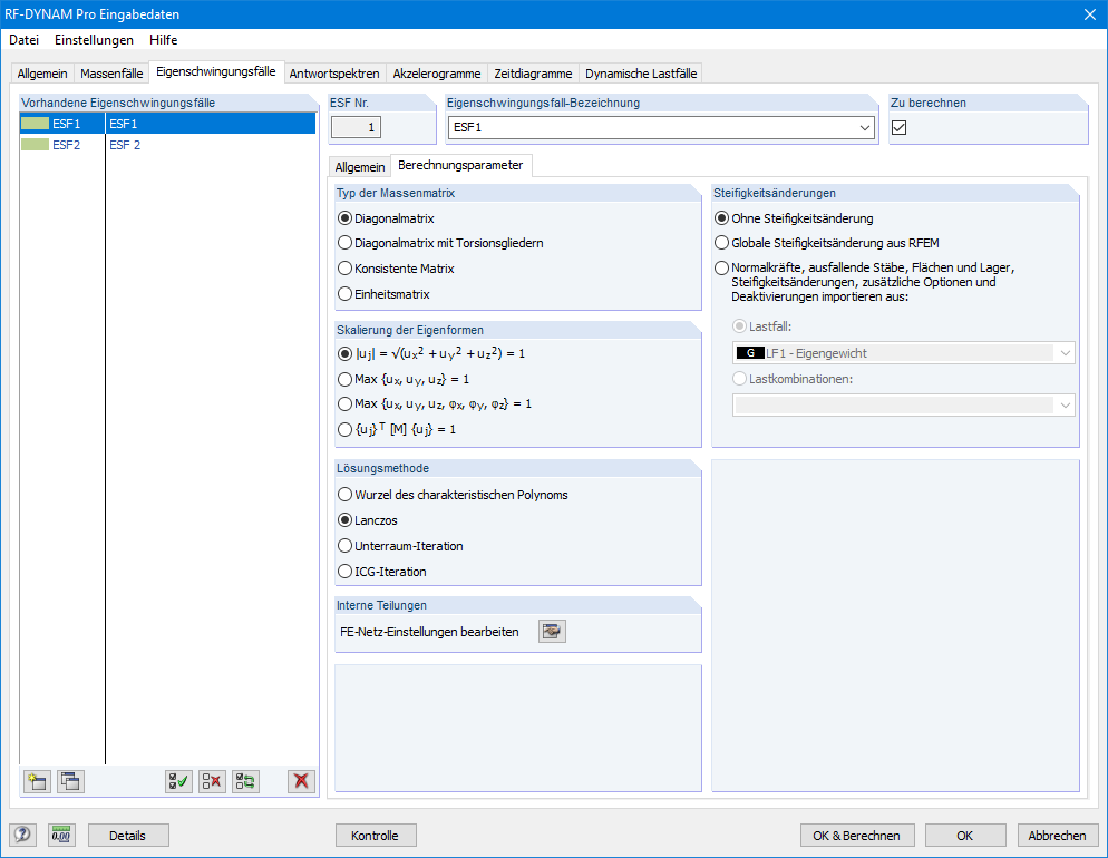 Der implizite Solver ist ein sehr genaues Verfahren, unabhängig von der Anzahl der verwendeten Eigenwerte, bedarf aber einem hinreichend kleinen Zeitschritt für die Berechnung. Beim Antwortspektren-Verfahren werden äquivalente statische Lasten intern berechnet. Damit wird im Anschluss eine lineare statische Analyse durchgeführt.