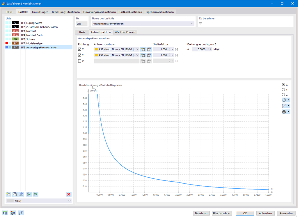 Wussten Sie schon? Äquivalente statische Lasten werden getrennt für jeden relevanten Eigenwert und getrennt für jede Anregungsrichtung generiert. Diese Lasten werden im Lastfall vom Typ Antwortspektrenverfahren gespeichert und RFEM/RSTAB führt eine lineare statische Analyse durch.