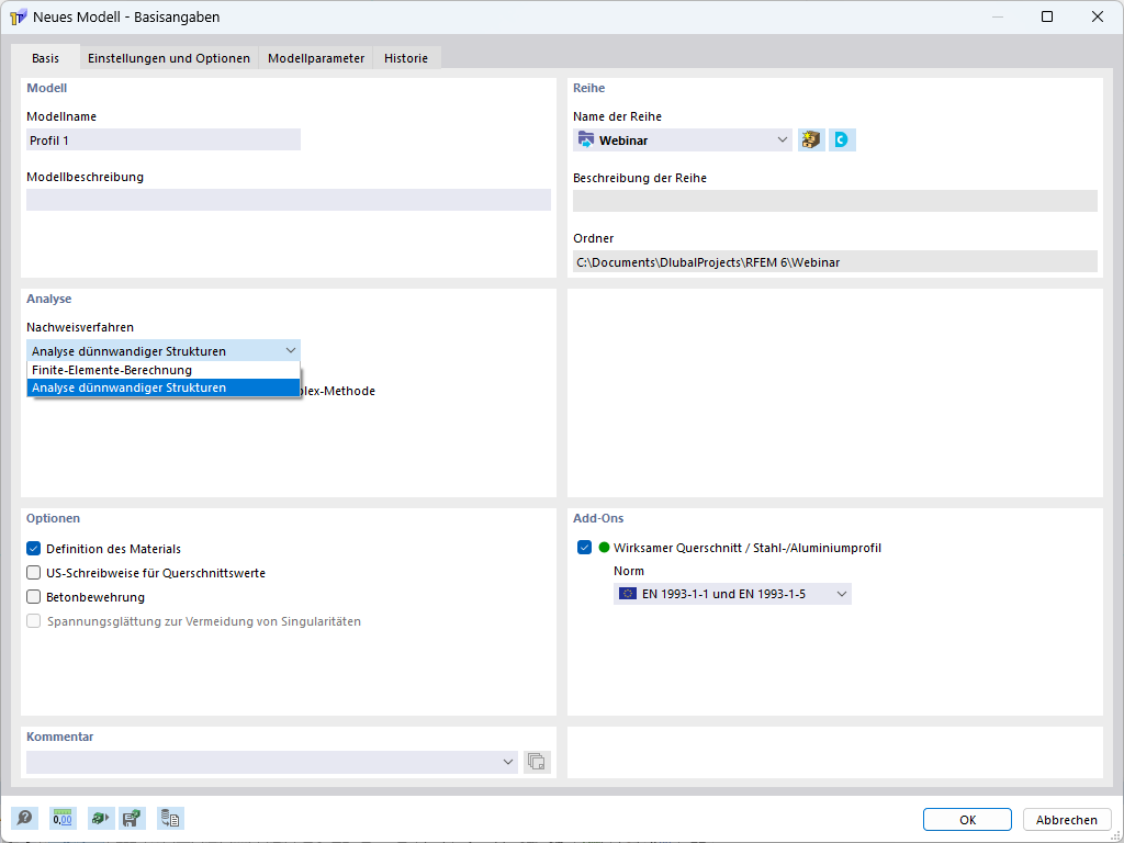 Die Erweiterung Effektive Querschnitte ist in RSECTION vollständig integriert. Daher stehen Ihnen alle Eingabemöglichkeiten von RSECTION zur Verfügung. Sie müssen lediglich in den Basisangaben die Normgruppe einstellen, nach welcher der effektive Querschnitt ermittelt werden soll. Nach dem Import des Querschnitts in das Hauptprogramm RFEM bzw. RSTAB steht dieser Ihnen wie ein Datenbank-Querschnitt für eine Bemessung in den Add-Ons Stahlbemessung und Aluminiumbemessung zur Verfügung.