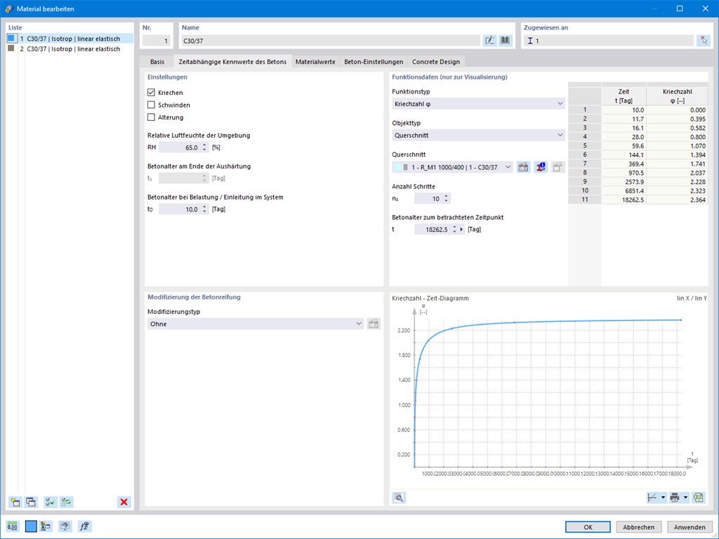 Für jeden Lastfall können die Verformungen zum Endzeitpunkt ausgegeben werden.