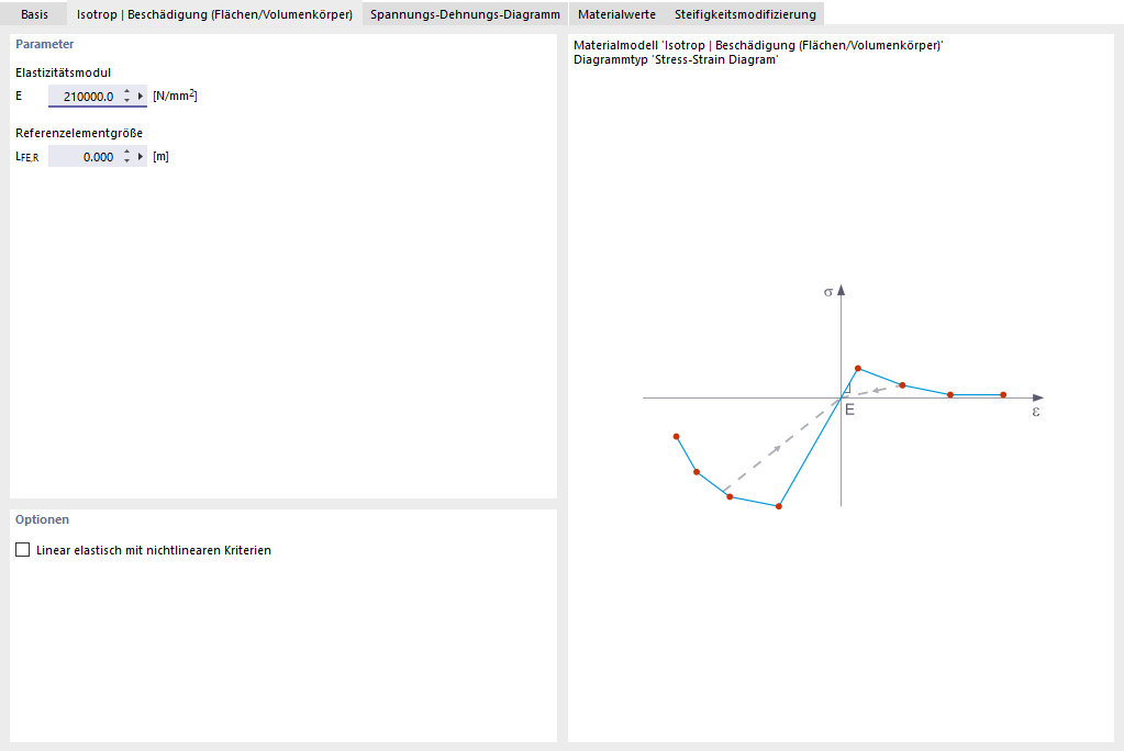 Theoretische Hintergründe zum Materialmodell 'Isotrop Beschädigung' können Sie im Fachbeitrag nachlesen: KB 001461 │ Nichtlineares Materialmodell Schädigung .