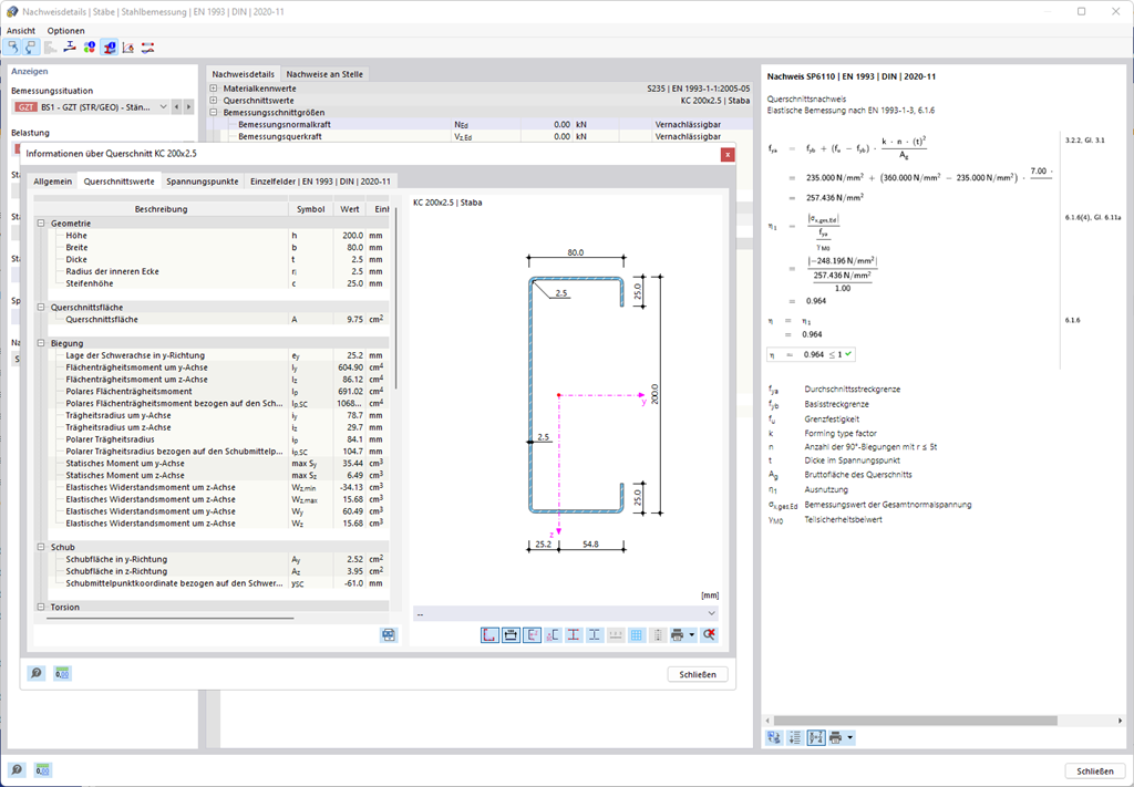 Sie möchten Querschnittsnachweise für kaltgeformte Stahlstäbe nach EN 1993-1-3 führen? Ob kaltgeformte Profile aus der Querschnittsdatenbank oder allgemeine kaltgeformte (nicht perforierte) RSECTION-Querschnitte – Ihr Statikprogramm hilft Ihnen dabei, den wirksamen Querschnitt unter Berücksichtigung des lokalen Beulens und der Forminstabilität zu ermitteln. Auch den Querschnittsnachweis nach EN 1993-1-3, 6.1.6 können Sie hier führen. Dabei werden die Schnittgrößen aus der Berechnung mit Wölbkrafttorsion (7 Freiheitsgrade) über den Vergleichspannungsnachweis berücksichtigt.