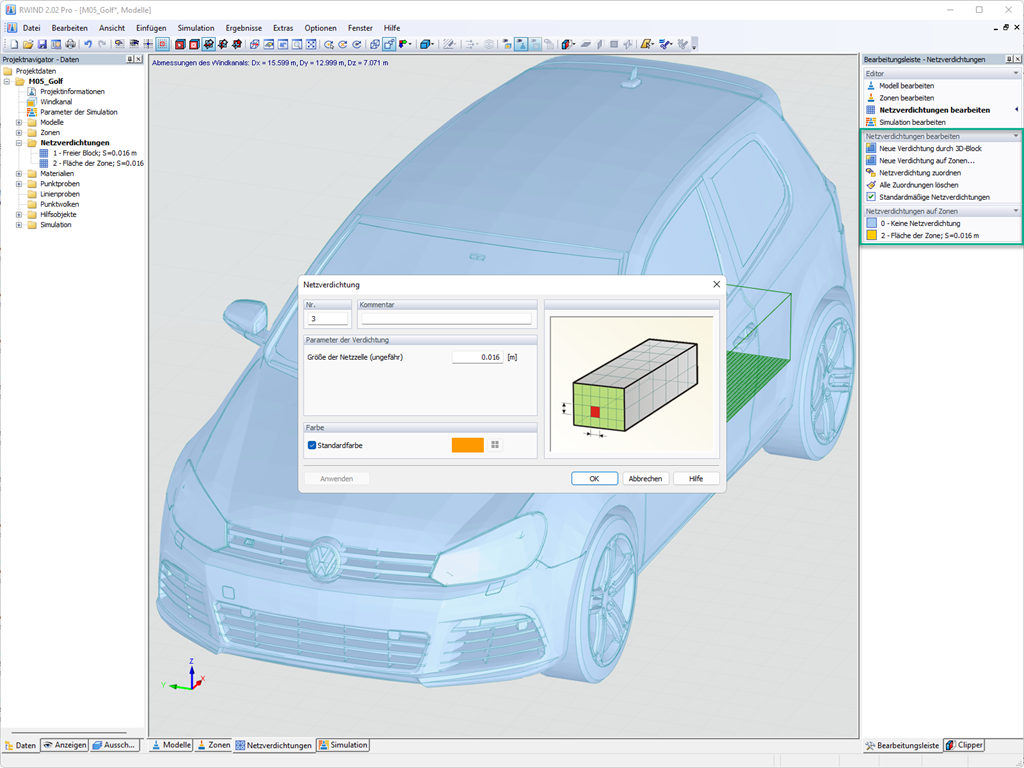 Diese Optionen helfen Ihnen dabei, auch bei Modellen mit unüblichen Abmessungen eine passende Regel für die Vernetzung des Gesamtmodells zu formulieren. Nutzen Sie den Editor, um kleine Modelldetails an großen Gebäuden oder detaillierte Netzbereiche im Nachlaufbereich des Modells effizient zu definieren. Sie werden begeistert sein!