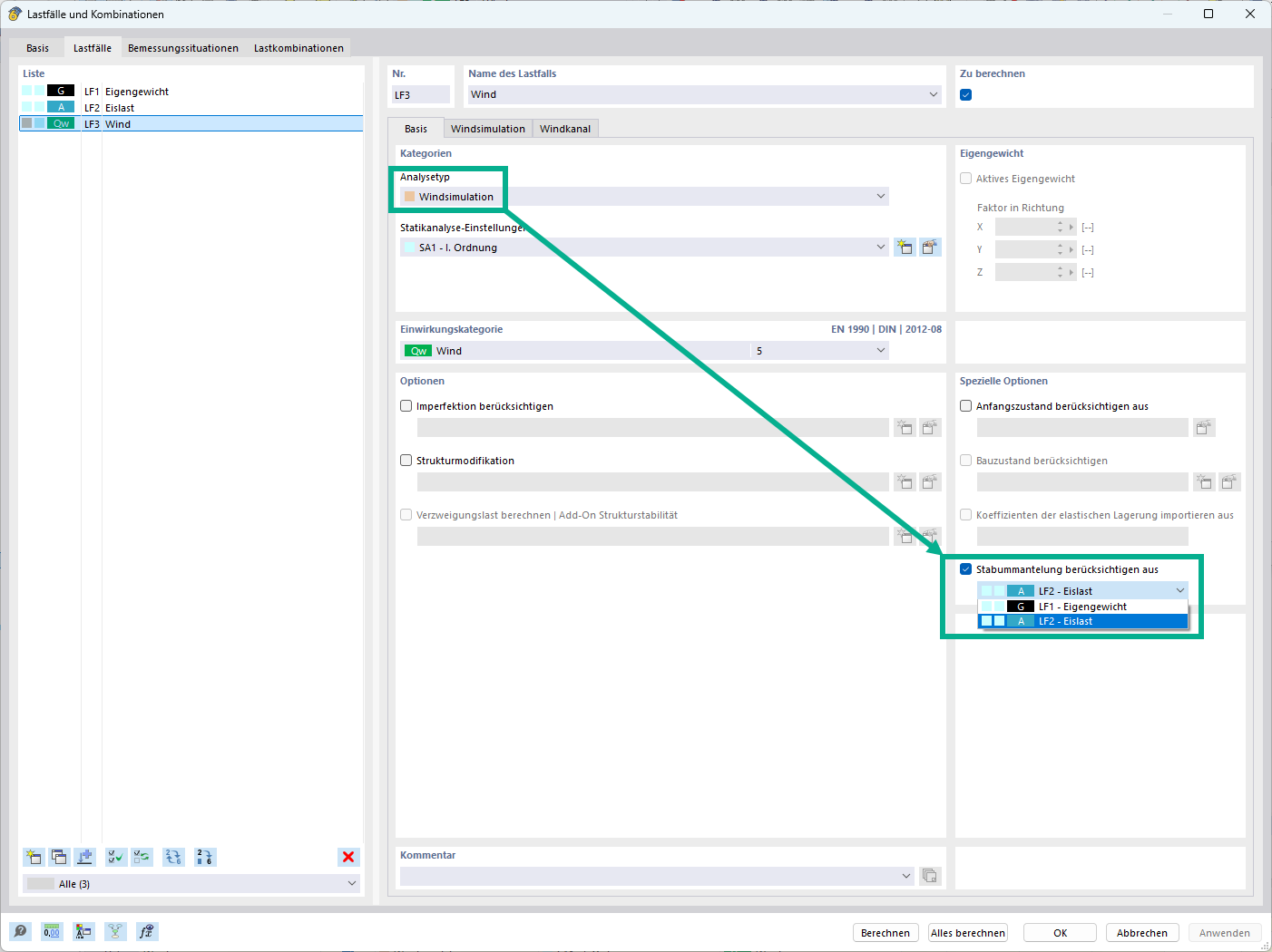Bei der Windsimulation lassen sich optional Stabummantelungen (z. B. aus Eislasten) berücksichtigen.