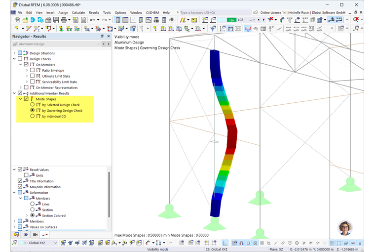 Select the Additional Results check box to display further information about the design checks performed. Currently, it is possible to display mode shapes.