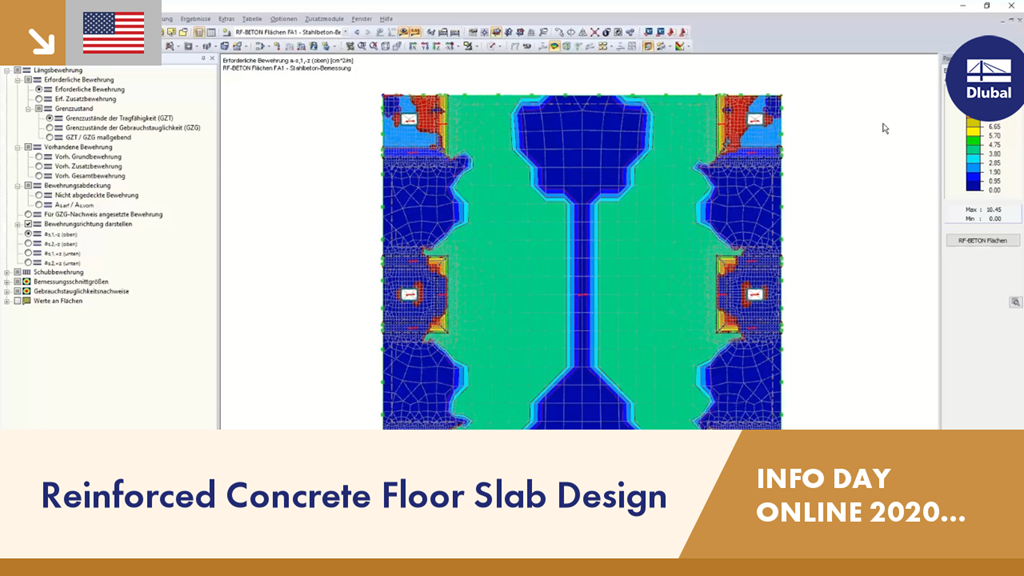 In the second part of the Dlubal Info Day Online recording, Paul Kieloch shows how to design a reinforced concrete floor slab in RFEM.