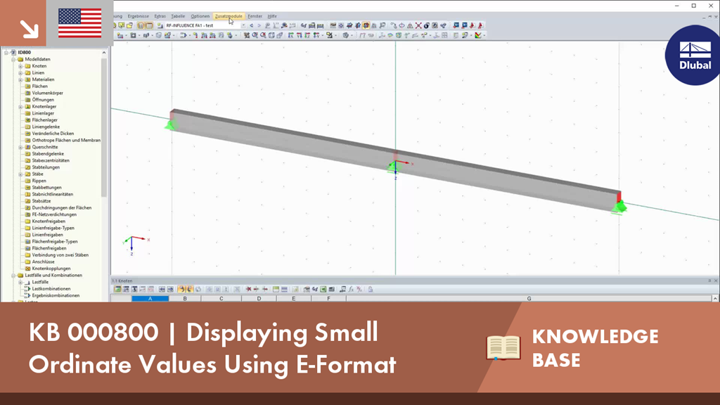 The determined values for the influence ordinates are displayed as decimal numbers with up to six decimal places by default. This is usually sufficient for the influence lines of internal forces.