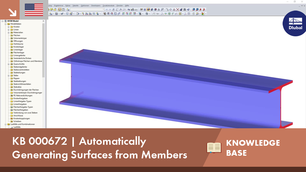RFEM allows you to generate surfaces from modeled members automatically. This has the advantage that, for example, the surface thicknesses of a steel section are generated automatically.