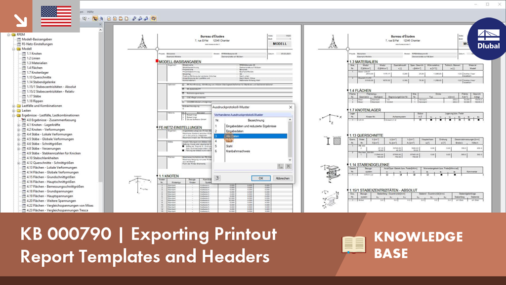 In RFEM, RSTAB, and SHAPE-THIN, you can create user-defined print templates ("Printout Report Template") and printout headers ("Report Headers"). These templates can also be transferred to other computers and used there.