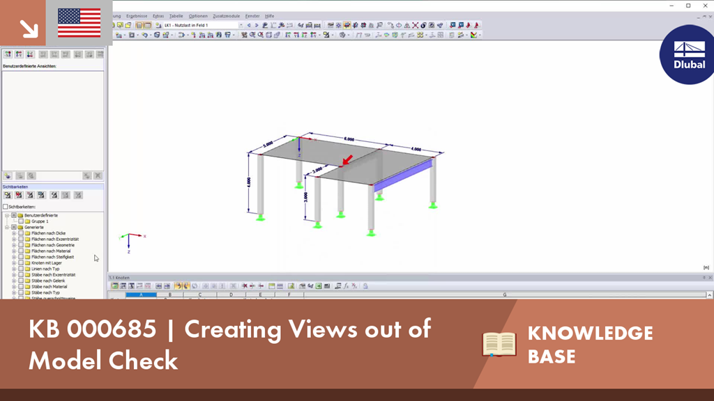 In RFEM 5 and RSTAB 8, you can save problems and warnings occurring during the model check as an extra view. This way, you can easily work through the hints and messages, one after the other, cleaning the model. The function is available for double nodes, overlapping members/lines, and surfaces.