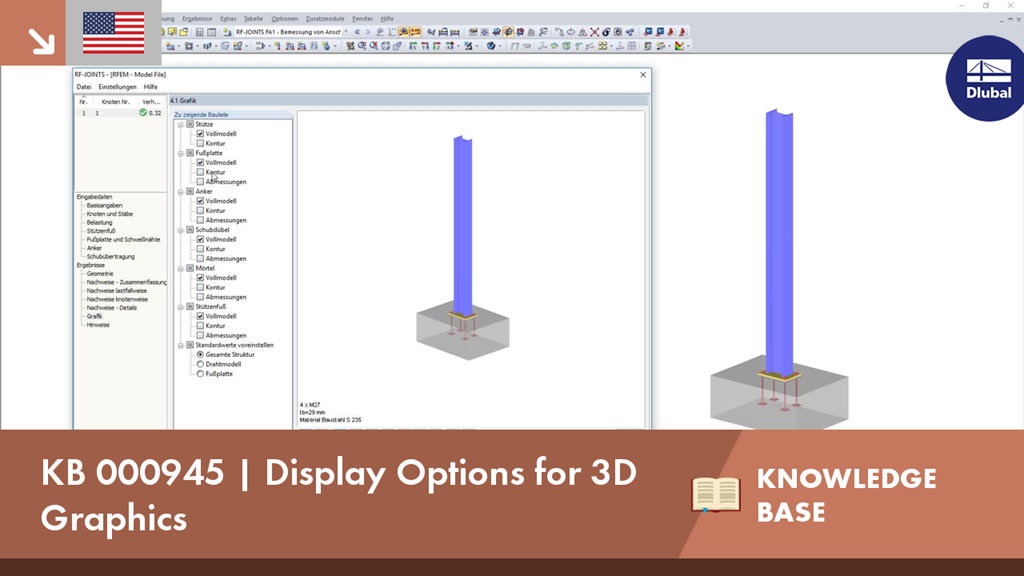In addition to the result tables, it is possible to create three-dimensional graphics in RF-/FRAME-JOINT Pro and RF-/JOINTS. This is a realistic representation of a connection to scale.