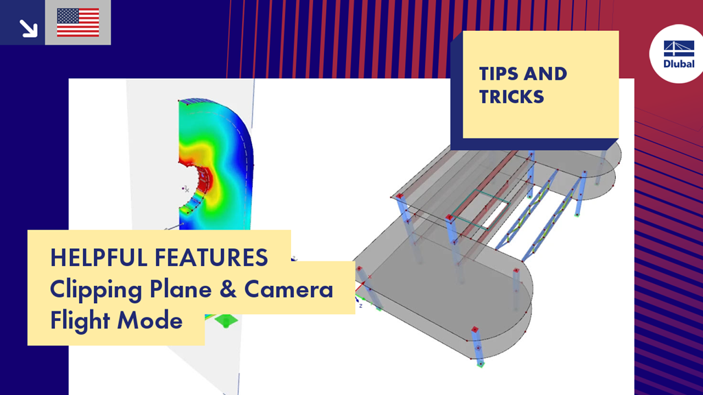 This video shows two very interesting features of the Dlubal software. First, the clipping plane that can be used to create a section plane through the model to see results at certain locations, and seconnd, the camera fly mode that allows you to fly through the model in 3D.