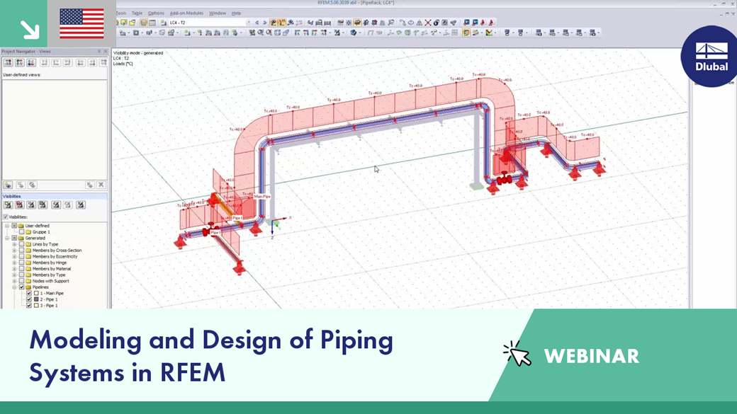 - Pipeline modeling and piping design on an example of the entire structure in RFEM