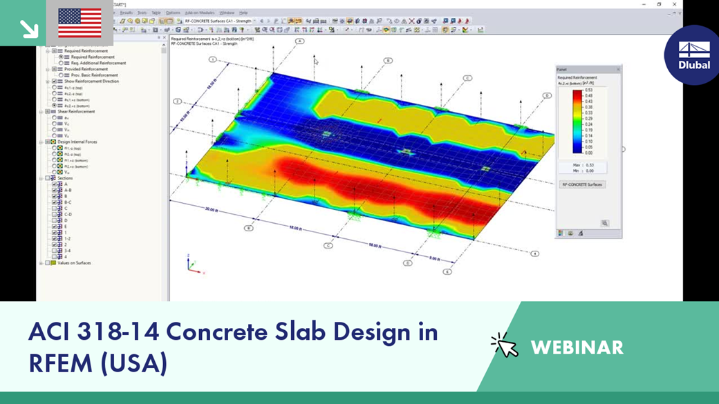- ACI 318-14 strength and serviceability design with the add‑on module RF‑CONCRETE Surfaces