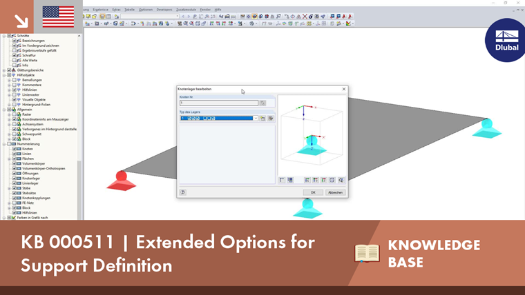 In addition to the options of support failure, features such as nodal friction or nonlinear relations such as support slippage, and many other options, are available. In the area of surface supports, you can also define them directly as a rigid support.