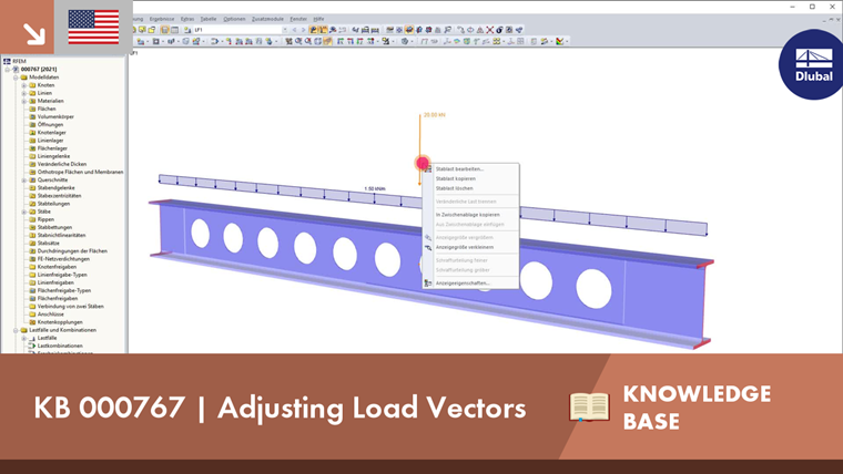 Furthermore, certain limits apply to the size of the load vectors, which are based on the dimensions of the overall model. You can extend or restrict these limit settings upwards or downwards using the [Relative setting of load size] button.