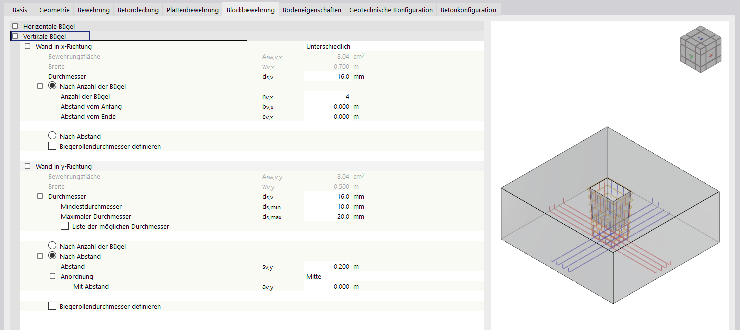 - Por cantidad: Ingrese el número deseado de estribos verticales nv,x.