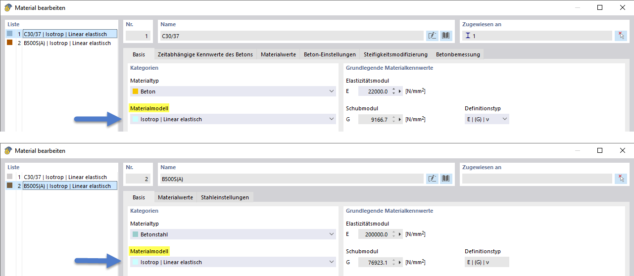 Por defecto, está seleccionado el modelo de material linealmente elástico. Se ofrece información adicional en el capítulo Materialien del manual de RFEM.