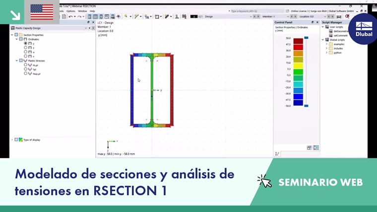 El programa RSECTION determina las propiedades de secciones para cualquier sección delgada y maciza arbitraria y realiza un análisis de tensiones.