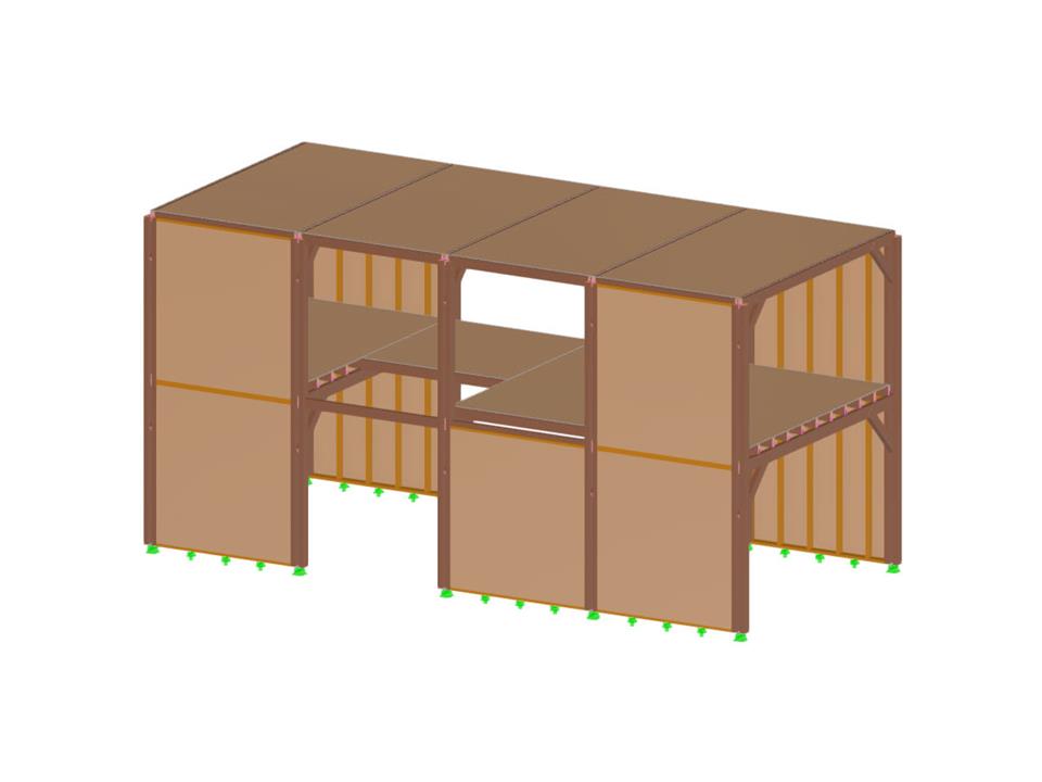 Descargue el modelo de una estructura de madera con muros de paneles de madera aquí y ábralo con el software de análisis de estructuras por elementos finitos RFEM 6.