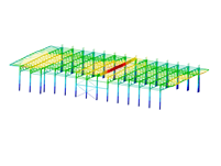 La estructura de acero se modeló y verificó estructuralmente utilizando el programa RFEM 6. Se diseñaron varias conexiones de acero utilizando el complemento "Uniones de acero".