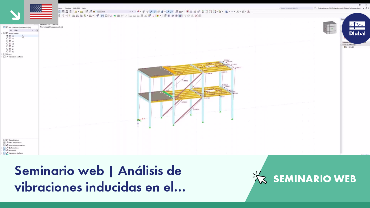 Seminario web | Análisis de vibraciones inducidas en el complemento Análisis en el dominio del tiempo en RFEM 6 SEMINARIO WEB