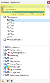 La imagen muestra el modo de pandeo de un voladizo, que se determinó numéricamente como parte de un complemento de RFEM para verificar la estabilidad estructural. El factor de carga crítica representado indica las condiciones de carga críticas que se consideran al analizar el comportamiento de pandeo. El procedimiento se utiliza para determinar los parámetros relevantes para la seguridad con el fin de optimizar los conceptos de los componentes de soporte. El análisis proporciona notas importantes para la evaluación de la estabilidad estructural.