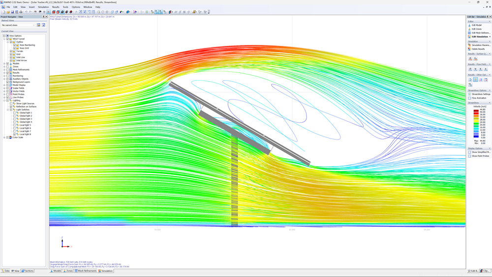 RWIND utiliza un modelo CFD numérico (dinámica de fluidos computacional) para simular flujos de viento alrededor de sus objetos mediante un túnel de viento digital.