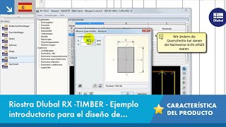 La geometría se introduce por medio de plantillas como análogamente se hace en todos los programas de la familia de RX-TIMBER. Mediante la selección de la estructura de la cubierta, se define la base geométrica que se puede ajustar mediante parámetros definidos por el usuario. La clase de madera relevante se puede seleccionar desde la biblioteca de materiales. Están disponibles todos los tipos de material especificados en EN 1995-1-1 para madera laminada encolada, frondosa y de coníferas. Además, es posible generar una clase de resistencia con las propiedades de material definidas por el usuario con el fin de ampliar la biblioteca.