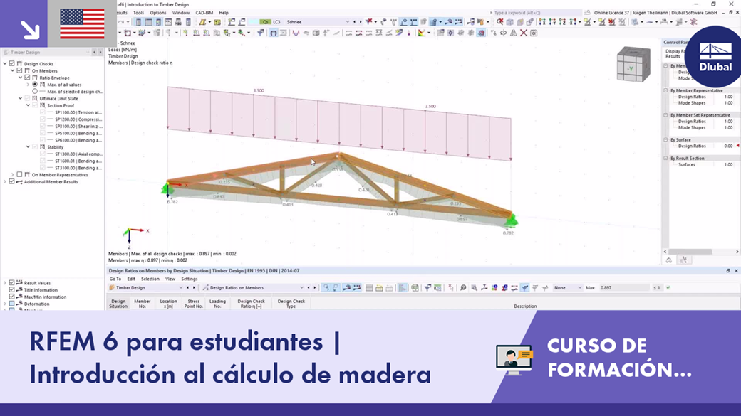 Curso de formación básico gratuito en línea sobre el software de análisis de estructuras por elementos finitos RFEM 6 | Introducción al cálculo de madera para estudiantes