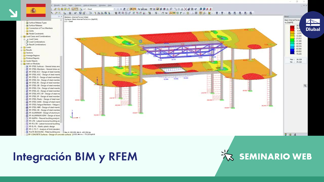 - Hasta 59:37: Demostración en vivo de la interfaz Tekla RFEM