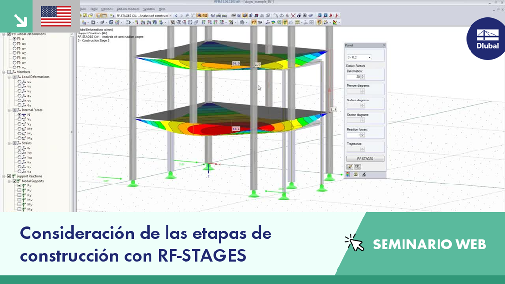 - Consideración de las etapas para la construcción de edificios utilizando RF-STAGES