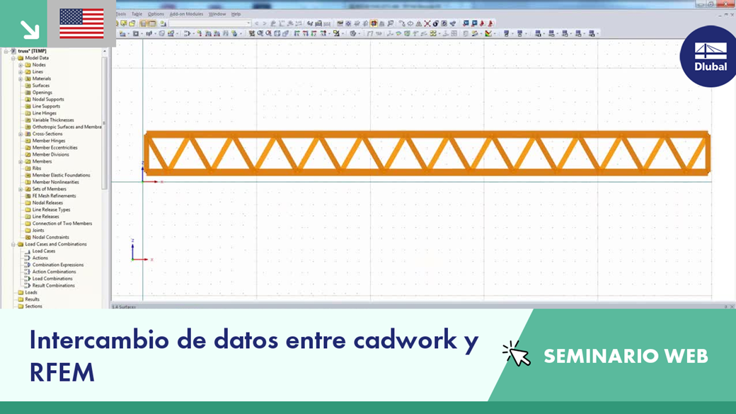 - Intercambio de datos entre cadwork y RFEM en un modelo de estructura y un modelo de superficie