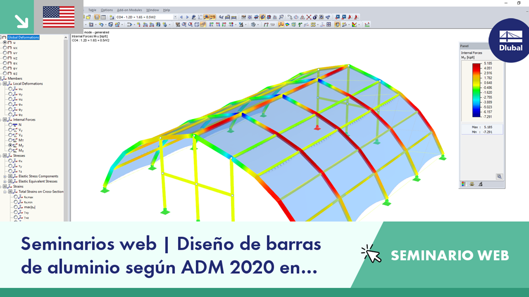 Este seminario web muestra el flujo de trabajo del diseño de barras de aluminio según el Aluminium Design Manual (ADM) 2020 en RFEM.
