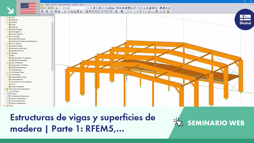 En este seminario web, le mostramos cómo usar el software de análisis de estructuras RFEM para modelar estructuras de barras y superficies de madera, introducir cargas y combinar los casos de carga.