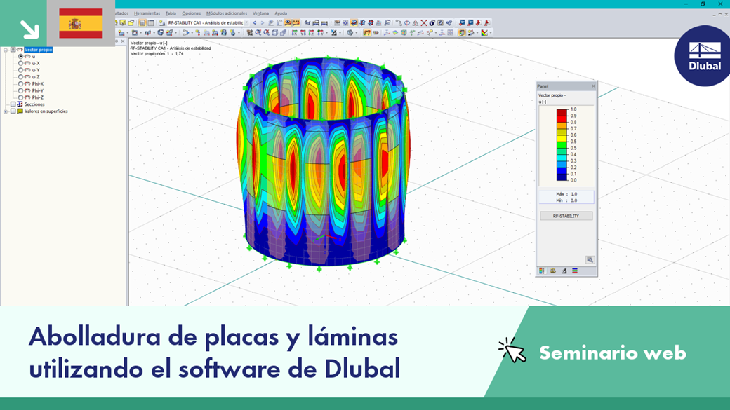 Este seminario web muestra cómo utilizar el software de análisis y diseño estructural de Dlubal para el cálculo de la abolladura de placas según EN 1993-1-5 y el cálculo de la abolladura de láminas según EN 1993-1-6.