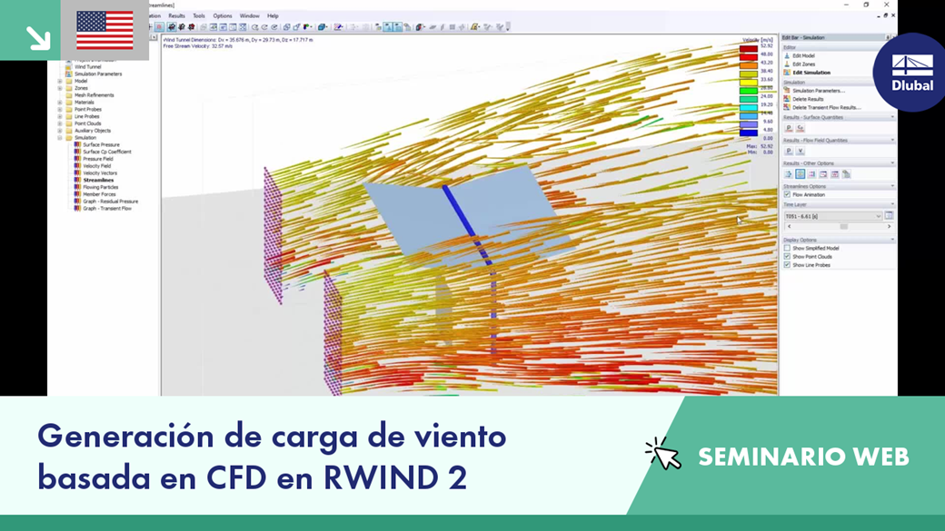 Simulación de viento en el túnel de viento digital en RWIND 2