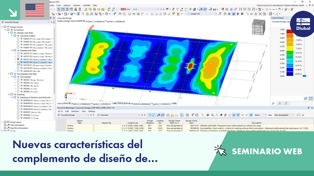 Entrada del modelo para el diseño en el complemento Cálculo de hormigón, incluyendo la presentación de las nuevas características más importantes del complemento de los últimos meses de desarrollo