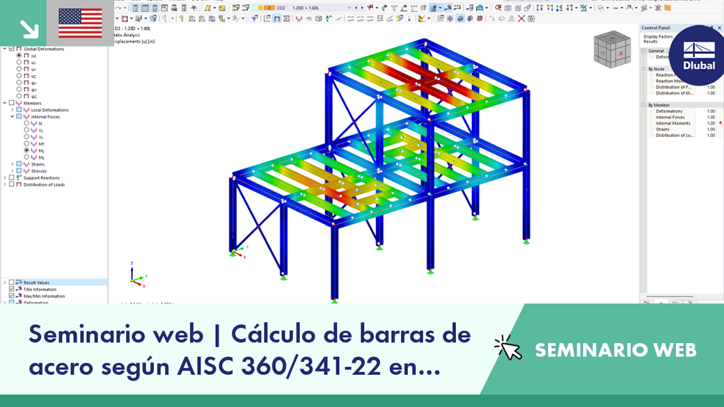 Este seminario web proporcionará una introducción al diseño de barras de acero según a AISC 360-22 y 341-22 en RFEM 6.