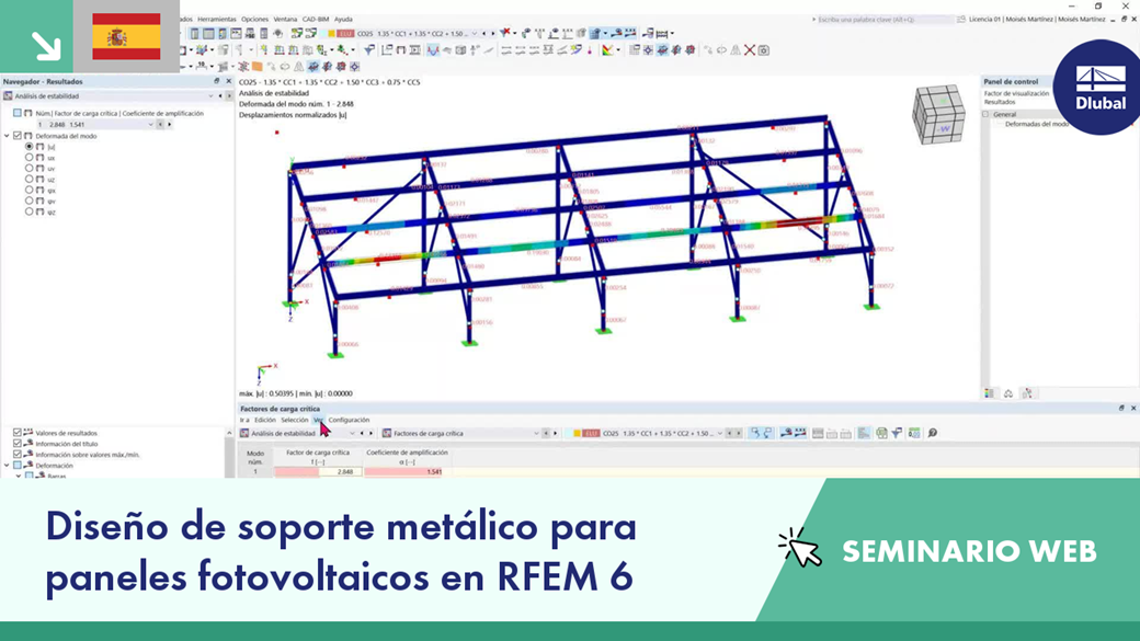 Mediante este seminario web gratuito, se muestra las distintas opciones de modelado de una sencilla estructura metálica que sirve de soporte para paneles fotovoltaicos, analizando en profundidad las cargas debidas al viento y el dimensionamiento.