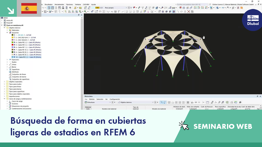 Búsqueda de forma en cubiertas ligeras de estadios en RFEM 6
