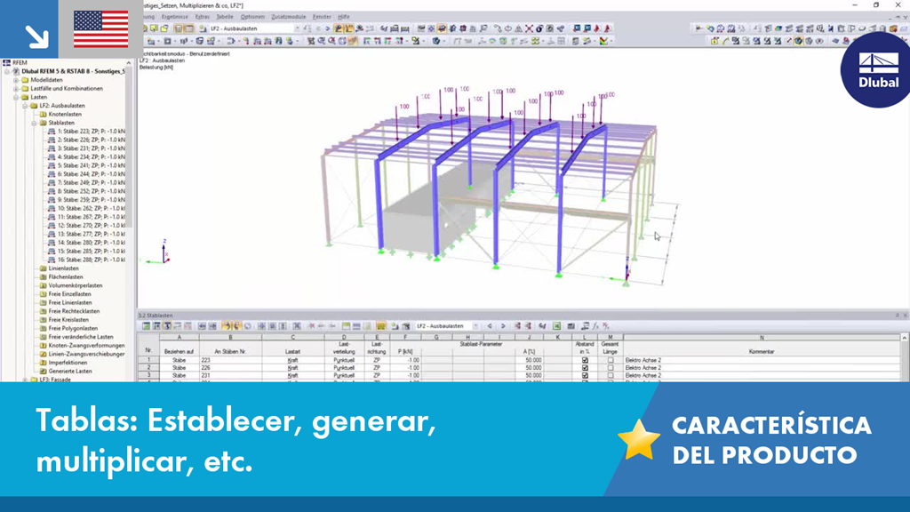Dlubal RFEM 5 y RSTAB 8 - Tablas: Establecer, generar, multiplicar, etc.