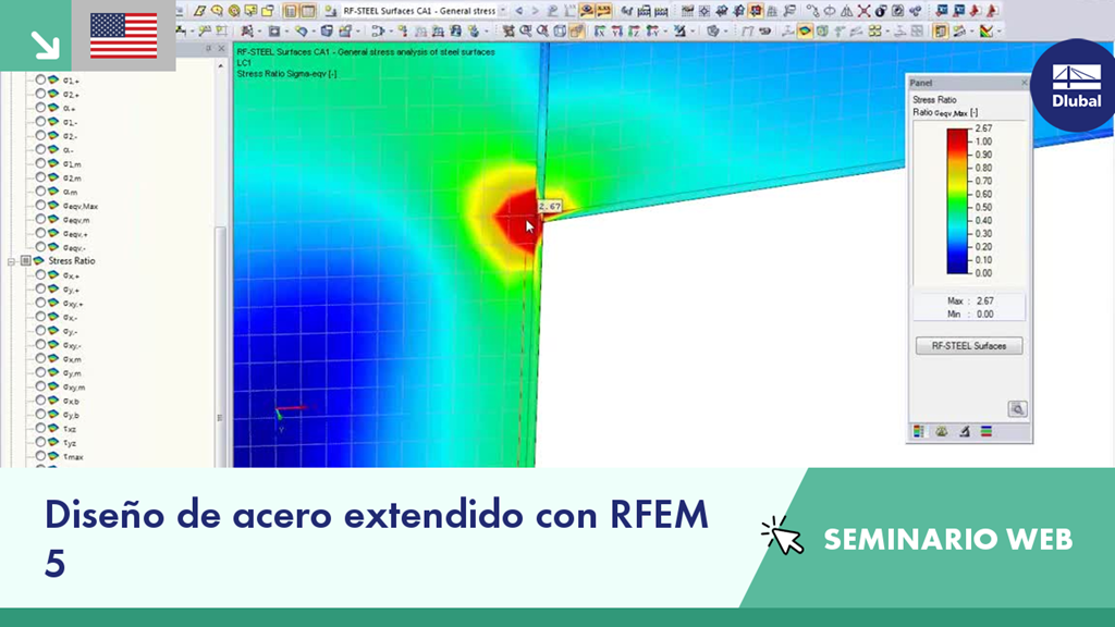 Este seminario web le mostrará posibilidades avanzadas para analizar los detalles de acero en RFEM.
