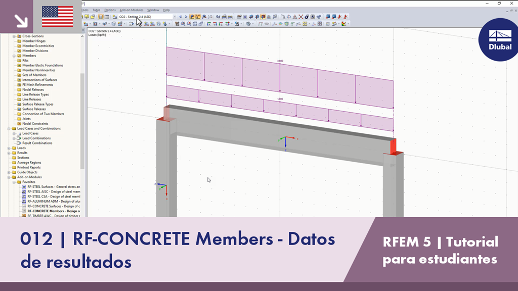 Tutorial de RFEM 5 para estudiantes | 012 Miembros de RF-CONCRETE - Datos de resultados