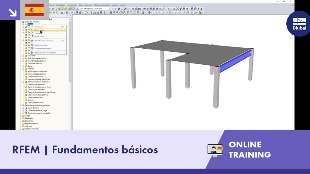 Formación básica en línea para el programa RFEM de análisis estructural por el método de los elementos finitos.