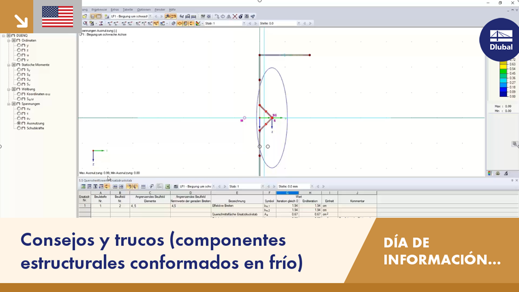En la cuarta parte de la grabación en línea de Dlubal Info Day, Andreas Niemeier muestra las opciones de cálculo para componentes estructurales conformados en frío según EN 1993-1-3 en SHAPE-THIN y RFEM.