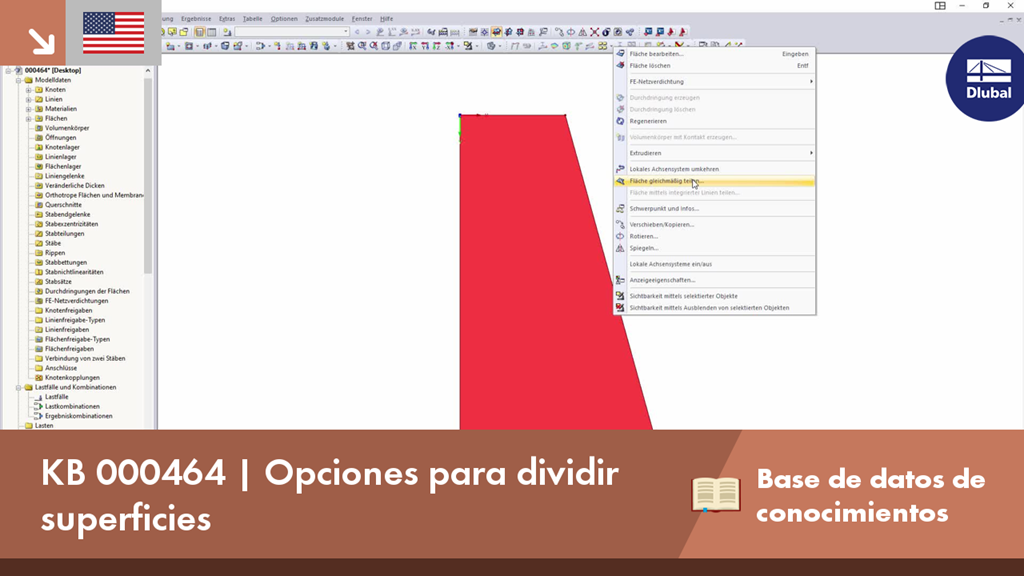 Si desea dividir una superficie limitada por cuatro lados en varias superficies, la forma más fácil de hacerlo es usar la función "Dividir superficie".